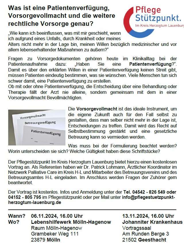 Geesthacht - Vortrag Pflegestützpunkt: Demenzprävention