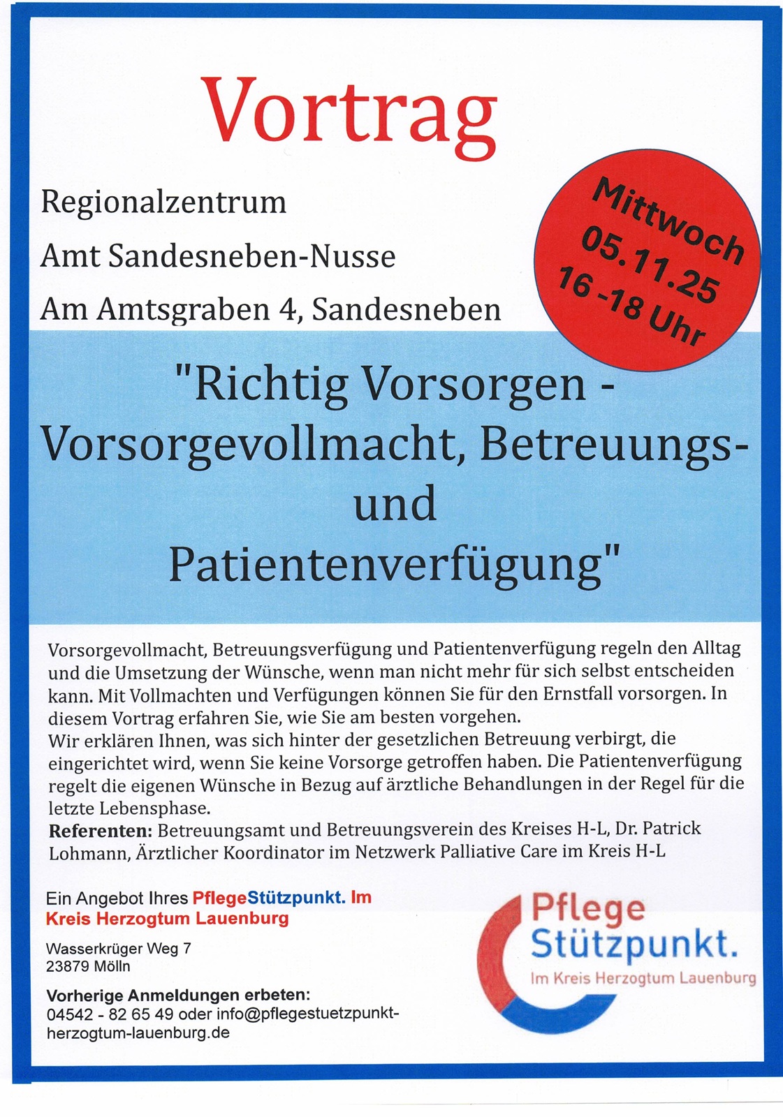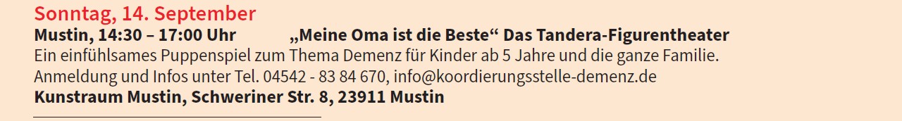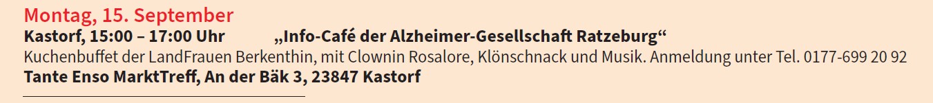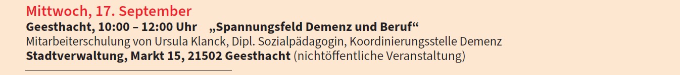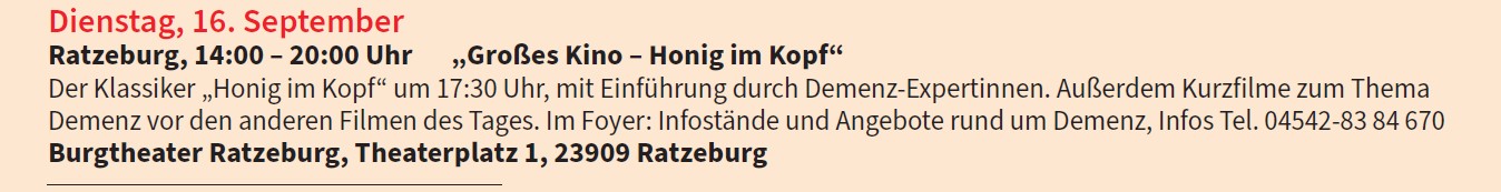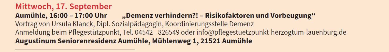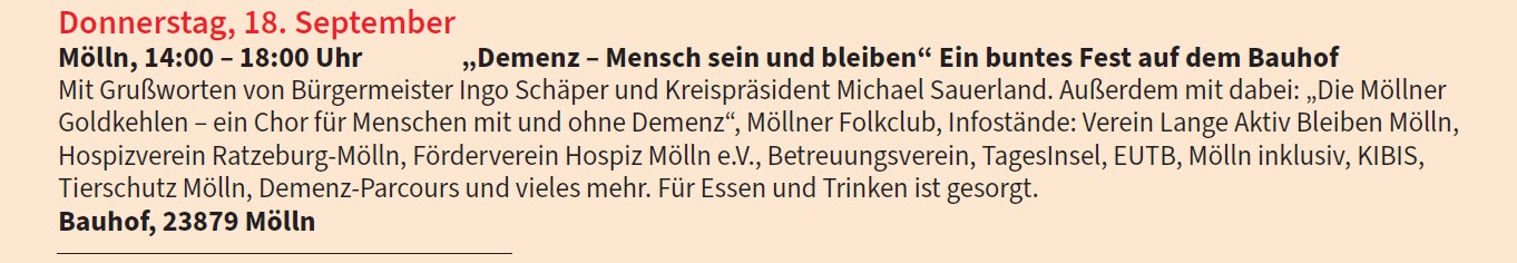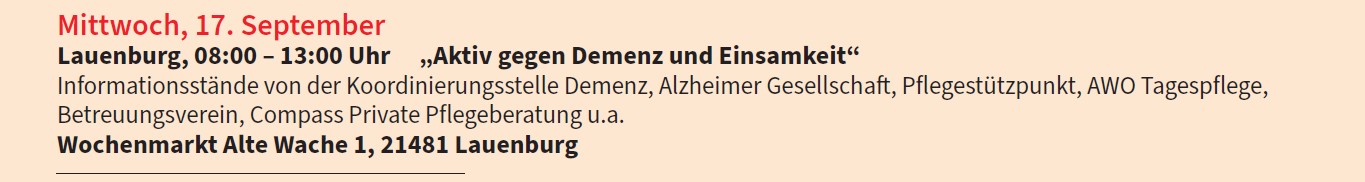 Veranstaltung in Kooperation mit der Koordinierungsstelle Demenz im Kreis Herzogtum Lauenburg